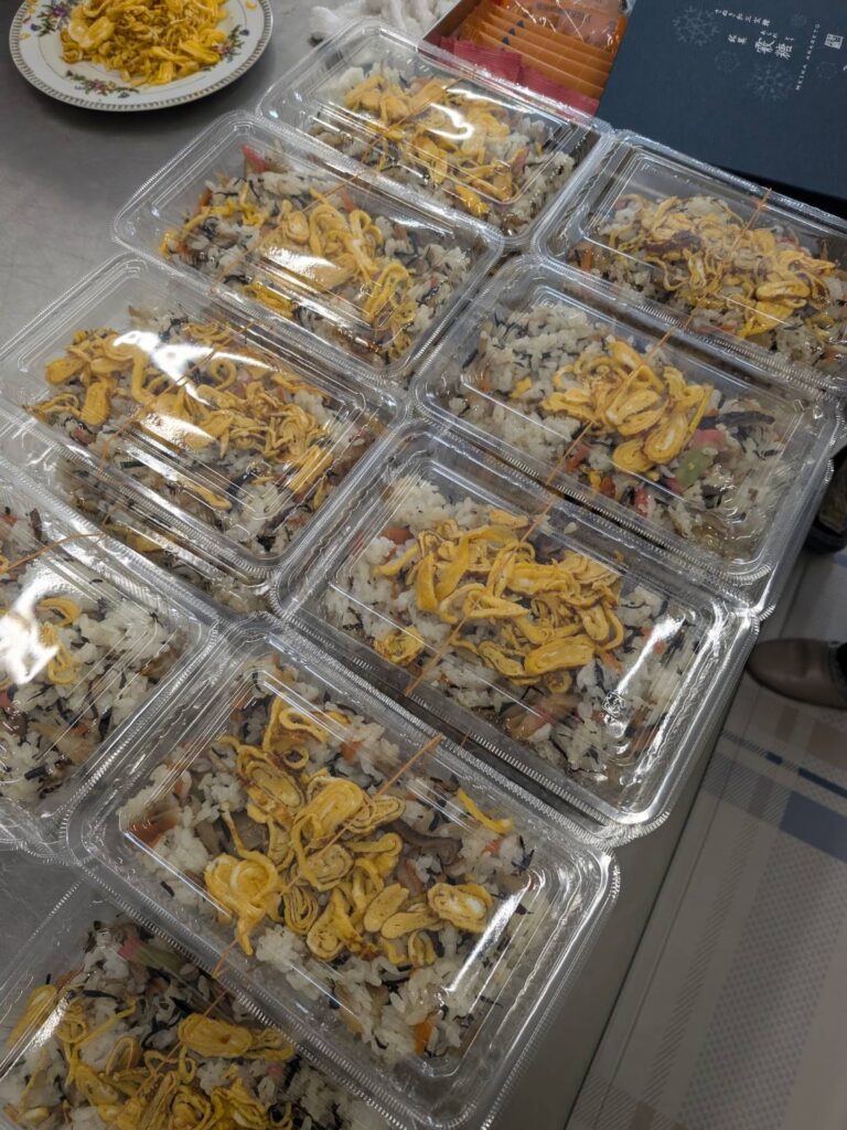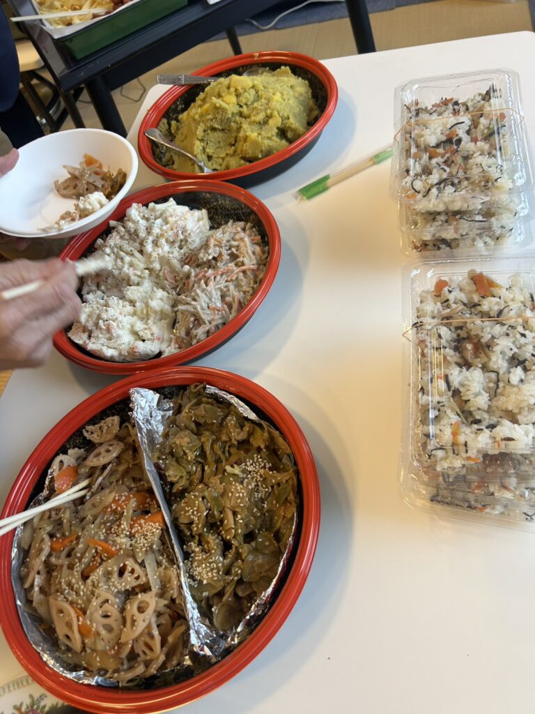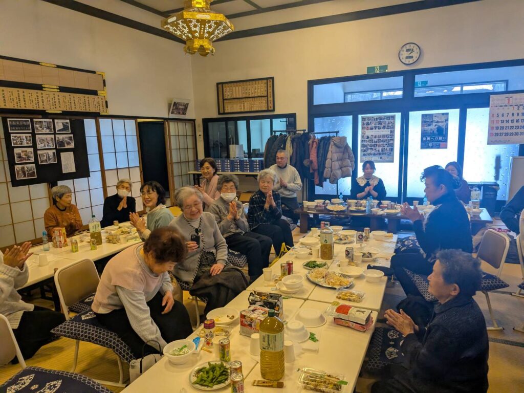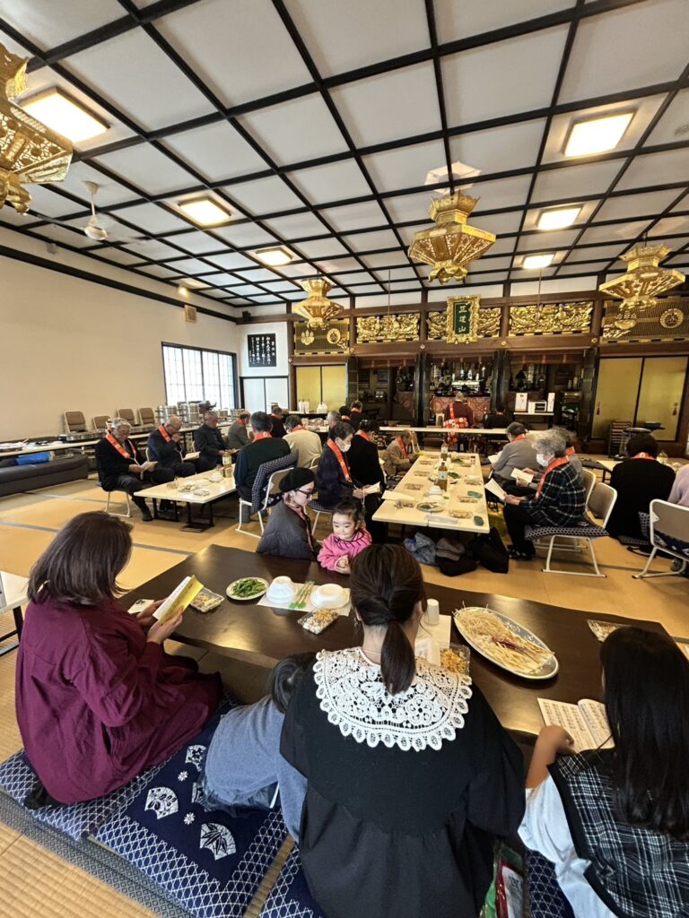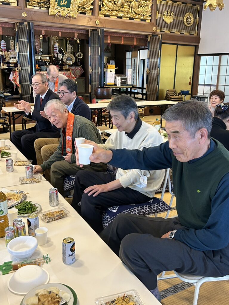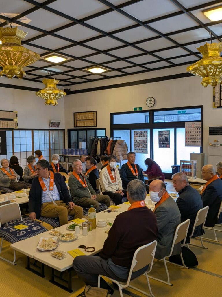 場所を移動することなく、皆様と肩を並べて同じ空間で過ごす時間は、安立寺ならではの『一体感』を感じられるひとときです。 美味しい食事を囲みながら、新年の挨拶や近況報告に花が咲き、本堂のあちこちから朗らかな笑い声が聞こえてきました。